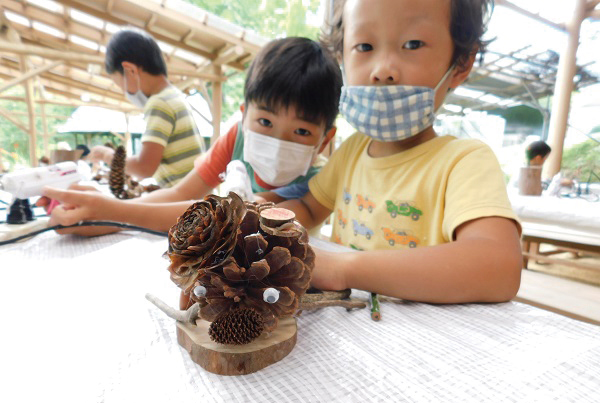 センター内を森林インストラクターと散策し、吐山の大自然の中で動植物を観察します。その後、森のめぐみ(木の実・木の枝など)を使って工作を行います。「人と人」、「人と自然」を結び、自然への興味を養うきっかけづくりをしませんか?