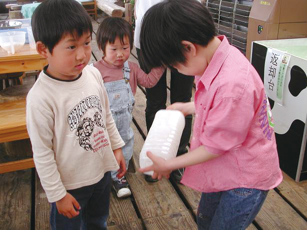 絞りたての新鮮な牛乳を使いバター作りに挑戦!牛乳を入れたビンをシェイクすると手作りバターの出来上がり。出来たバターをクラッカーにつけて味見ができるよ。