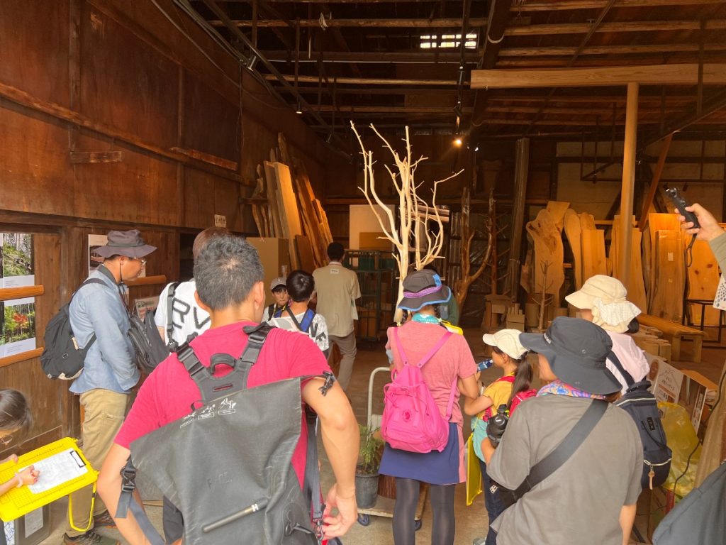 お昼ご飯を食べたあとは、午前に訪問した森で伐った木を実際に、丁寧に手間をかけて銘木にしていく現場を見るために、森庄銘木産業株式会社を訪問しました。