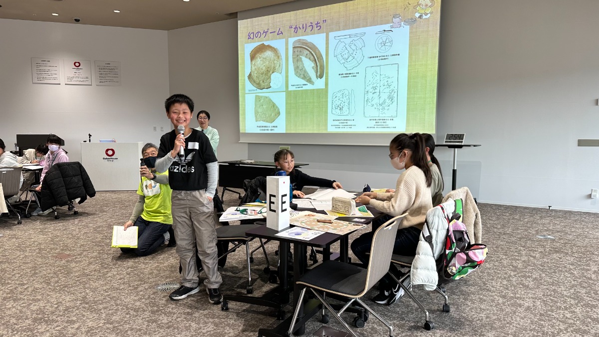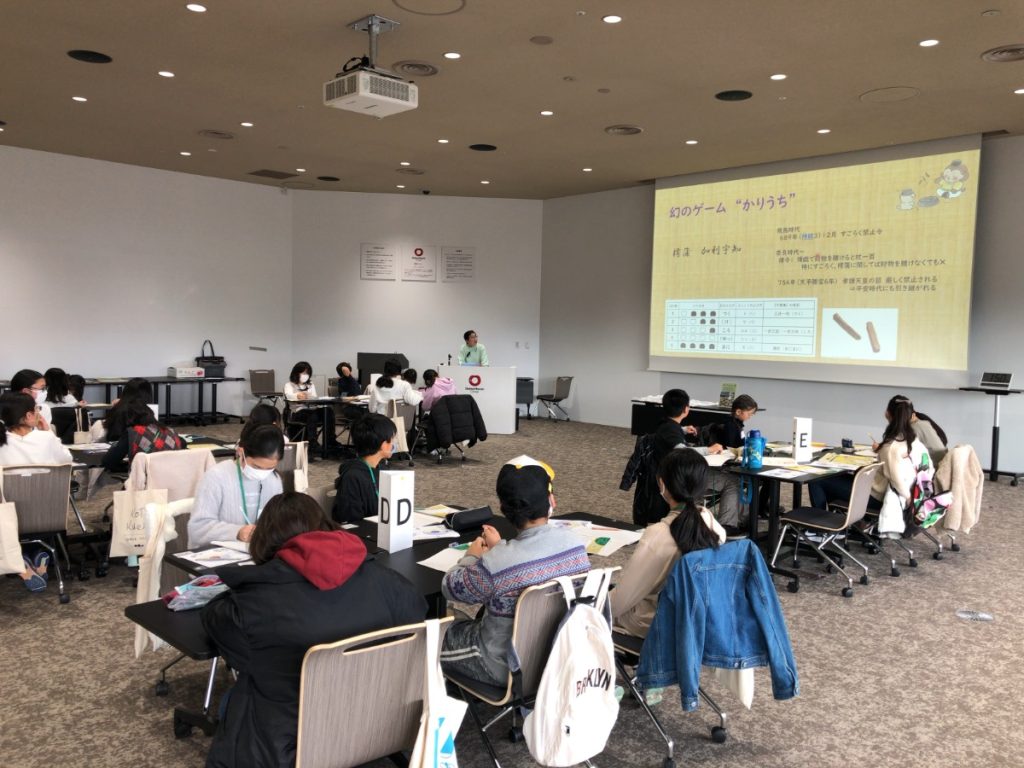 1300年前に都で大流行した古代のボードゲーム「かりうち」を体験し、今も昔も変わらない人々の暮らしについて迫りまりました。