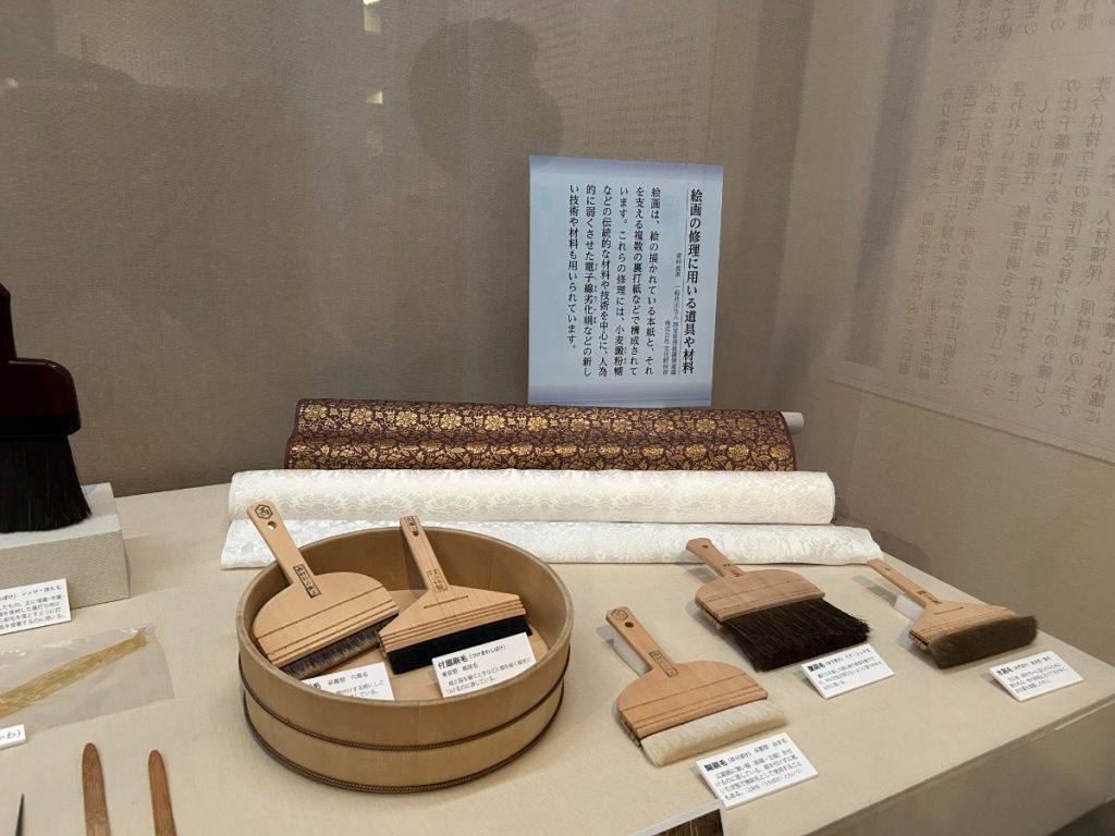 仏像や掛軸など、様々な文化財の修理過程をパネルで詳しく解説。