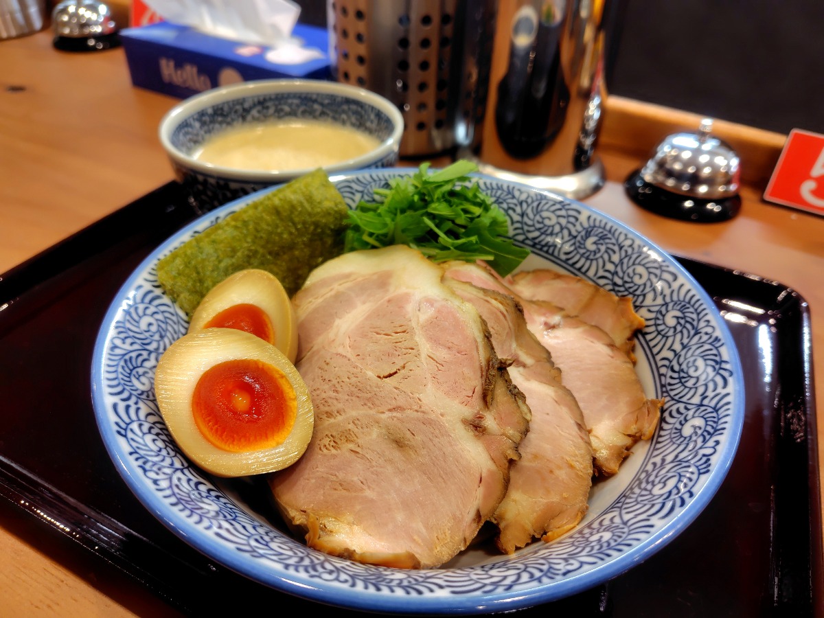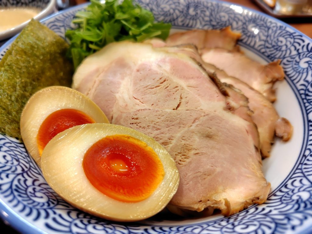 特製にはチャーシューが4枚も入っていてボリューミー。シットリとしていて味付けもしっかりあります。半熟卵もトッピングされています。