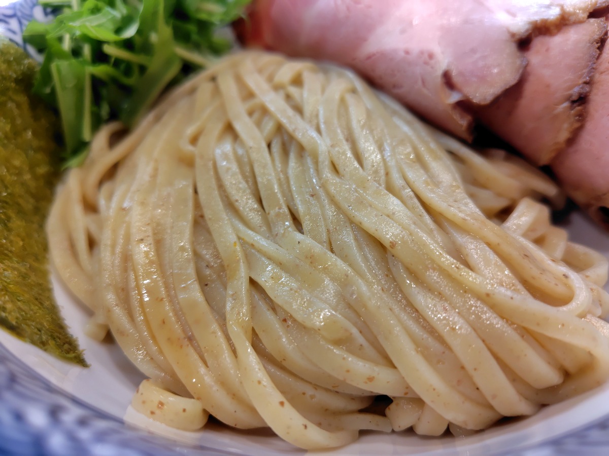 風味豊かでグニュッとした弾力が楽しめ、つけ汁がしっかりと絡みます。
