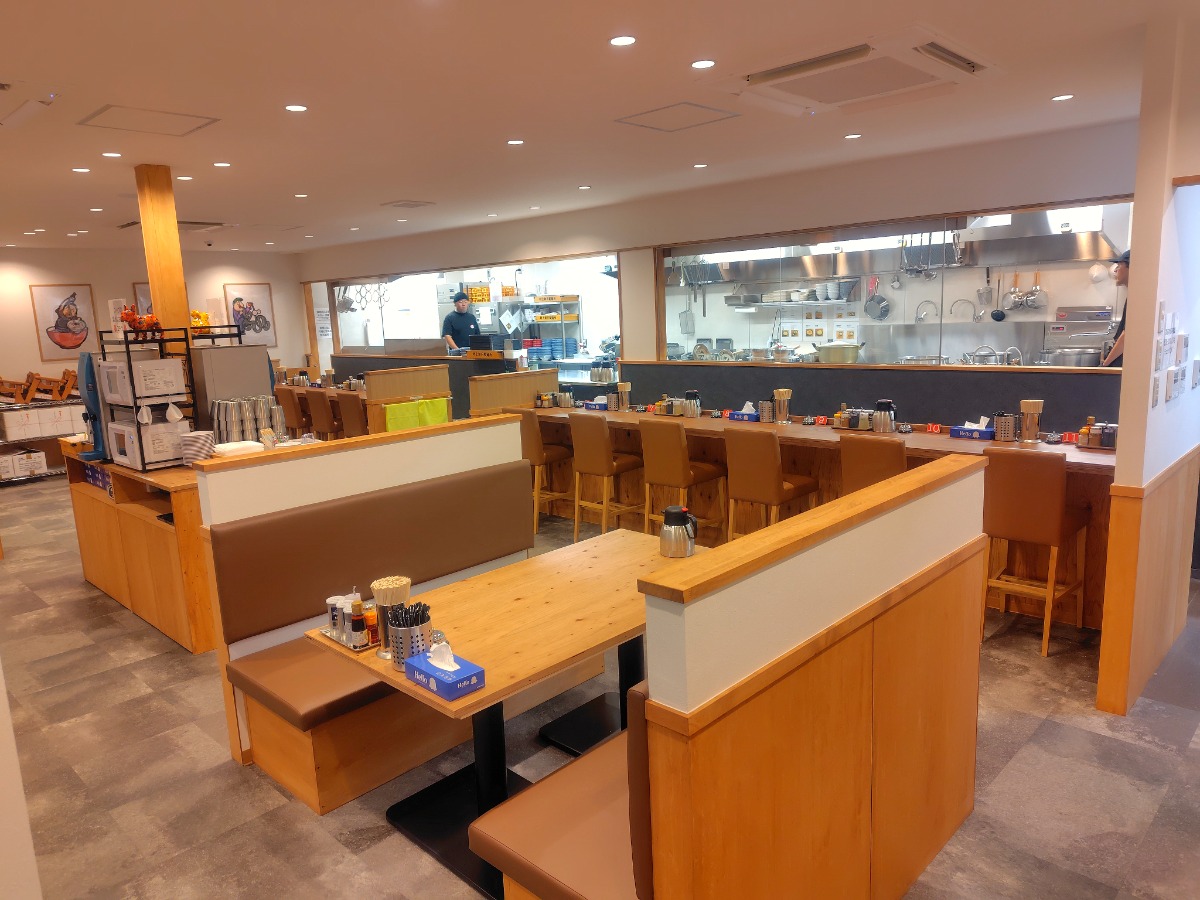 今までの店舗の中でも店内が最も広く、テーブル席も多くなっています。