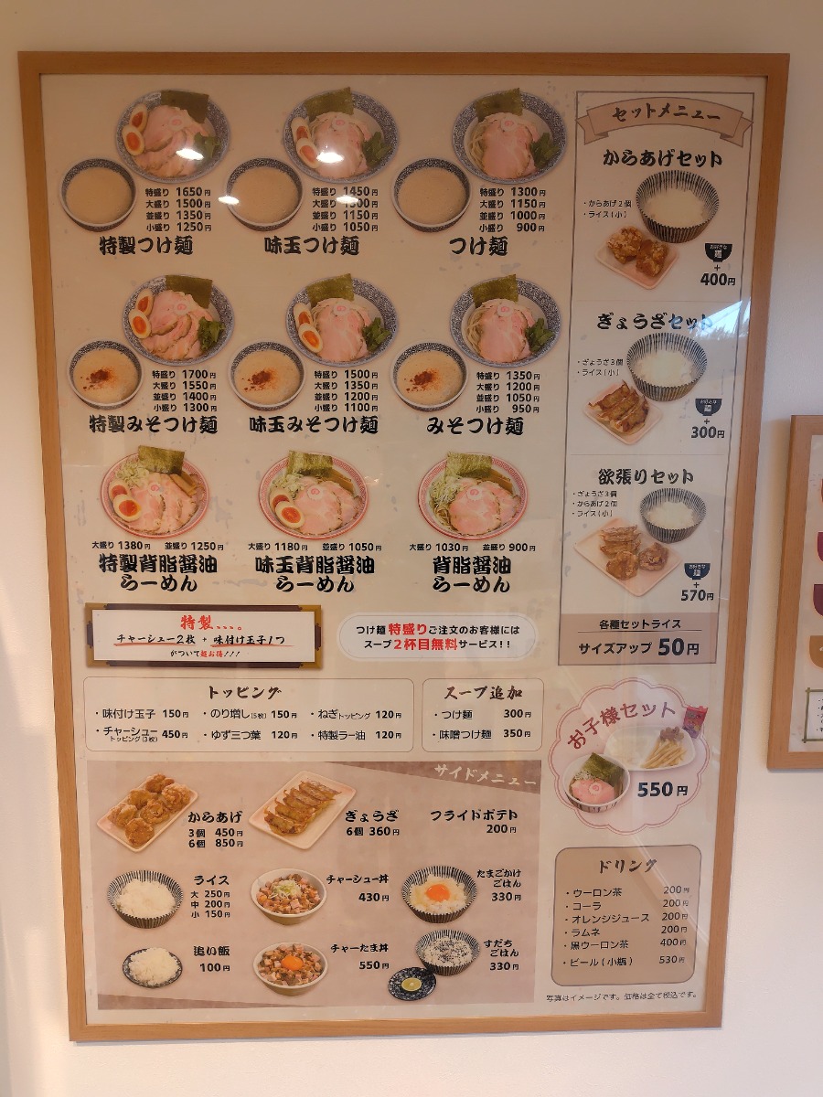 コチラの店舗では、これまで同系列で提供のなかった「餃子」や「唐揚げ」といったサイドメニューの提供もされていて、お得なセットもあります。