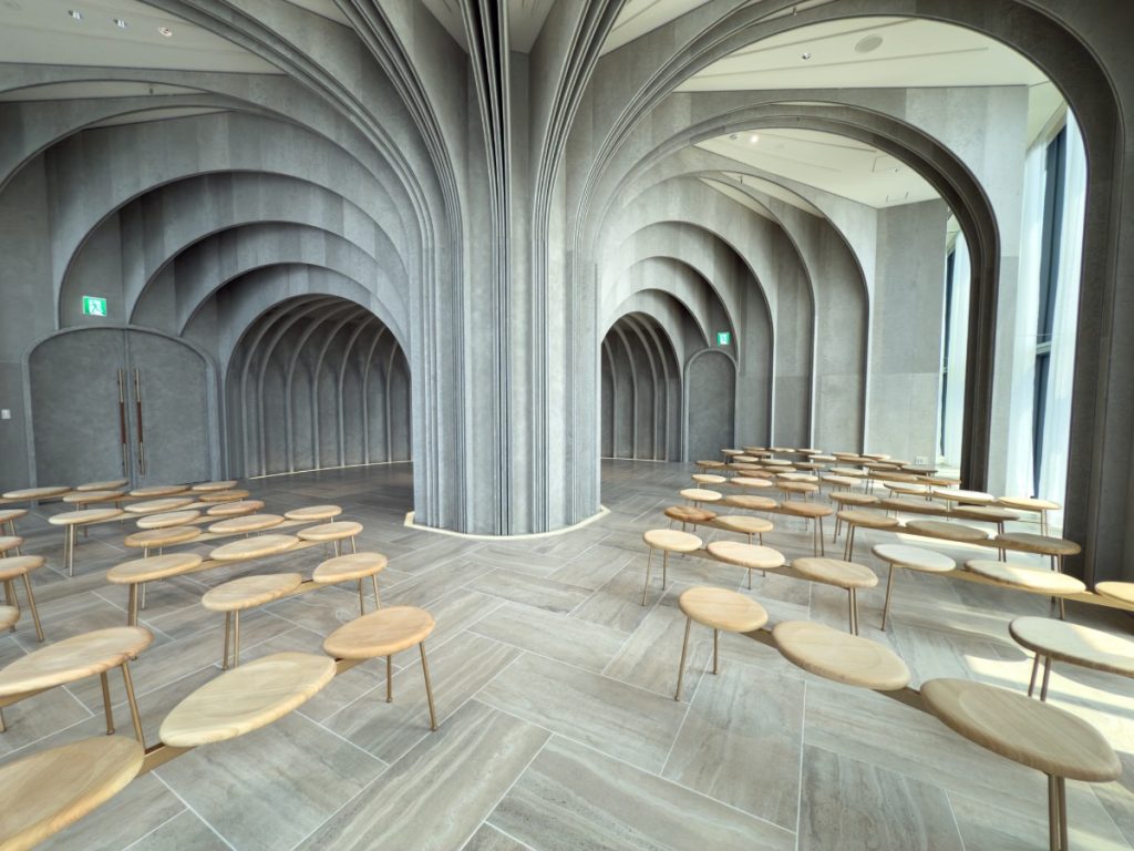 大樹のように広がるアーチと光の演出が、訪れる人の感性を揺さぶる。