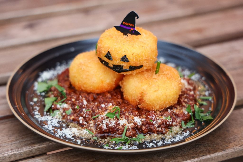 サクッと揚がったコロッケにジャックオランタンの顔が描かれた、見た目も楽しいハロウィン限定メニュー。