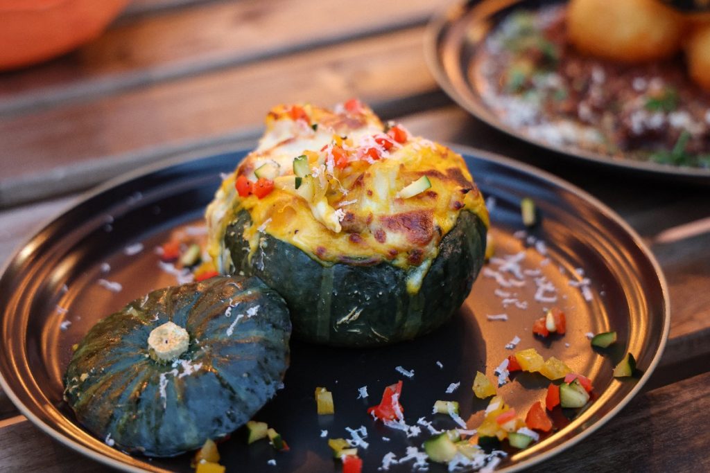 まるごと焼き上げたかぼちゃグラタンは甘みとチーズのコクが濃厚で、シェアしても食べ応え十分。