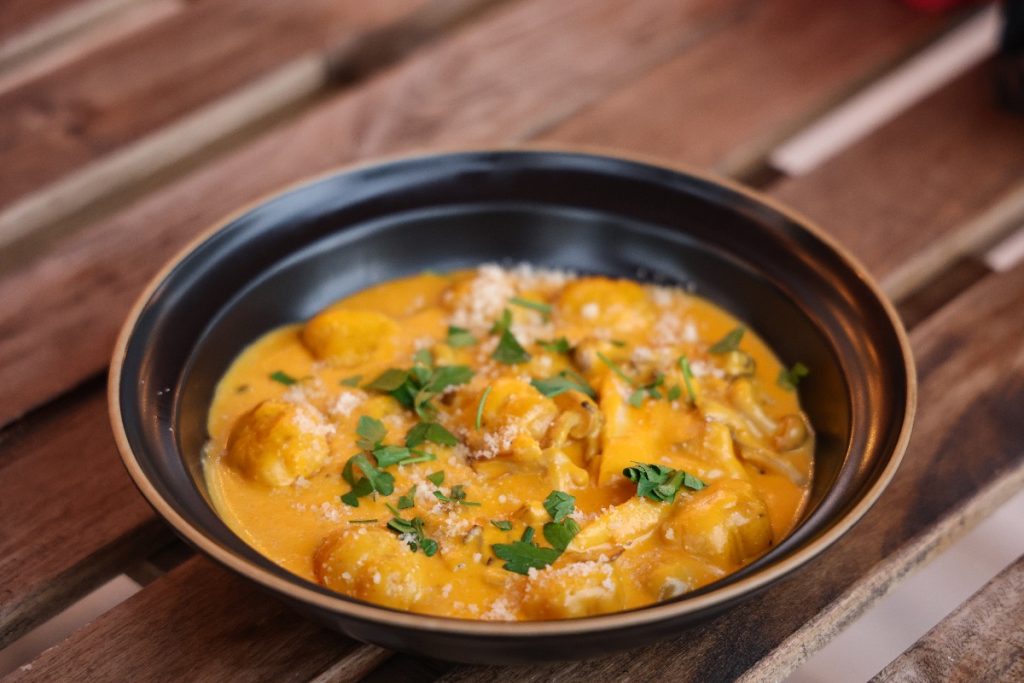 選べるメインは、もちもち食感が楽しい明太子クリームのカボチャニョッキか、なめらかなソースが絡むカボチャクリームのパスタか、。