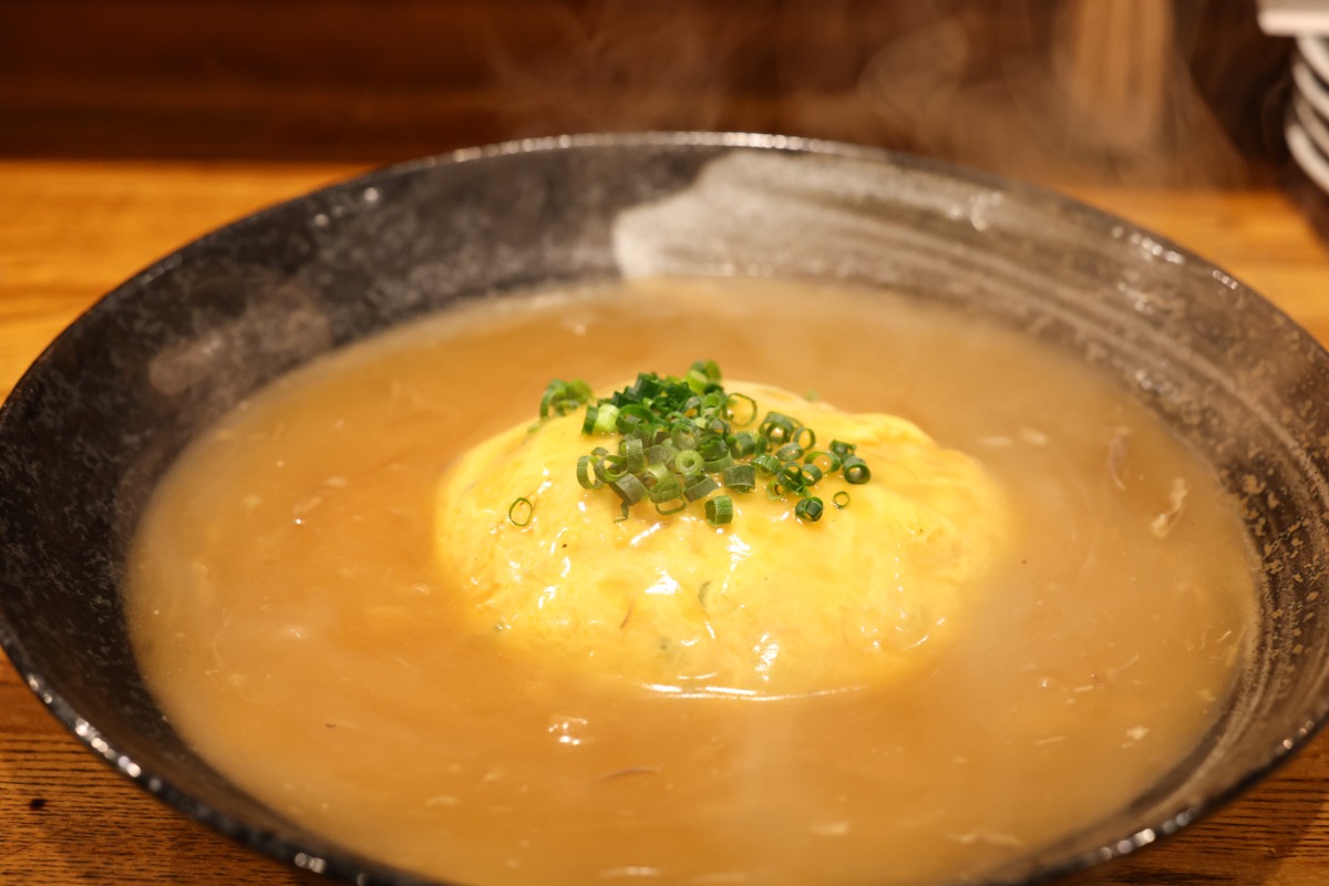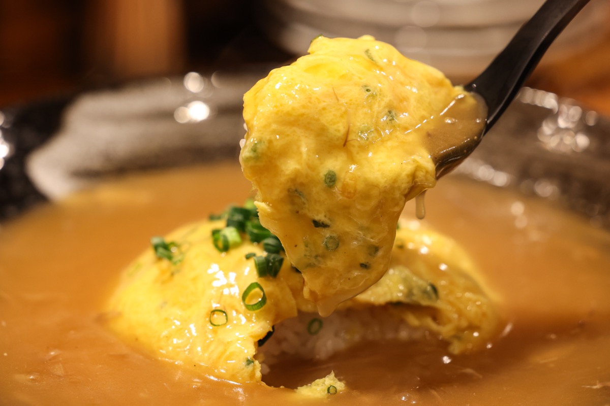 肉條天津飯はとろとろの牛すじが沢山入ったあんをかけた天津飯。