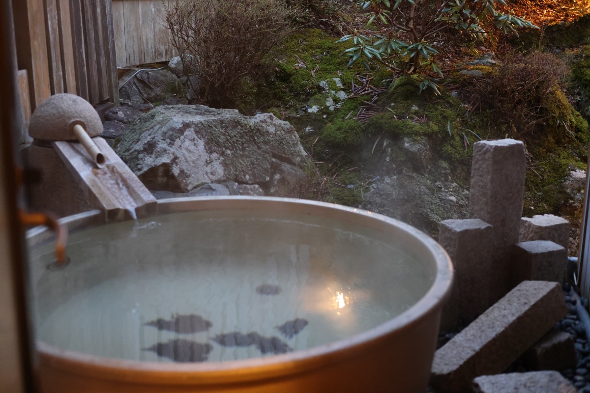 『Camp Base Kadojin』に宿泊すると、「洞川温泉 角甚」の日帰り温泉が無料で利用できるのもうれしいポイント。