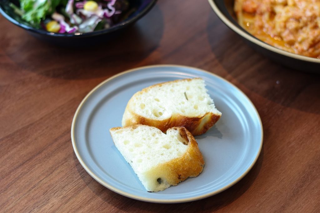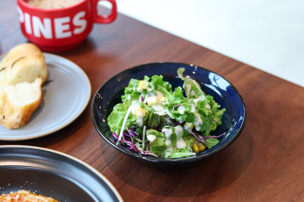単品メニューに、300円追加すると、スープ・サラダ・パンが付いてきます!