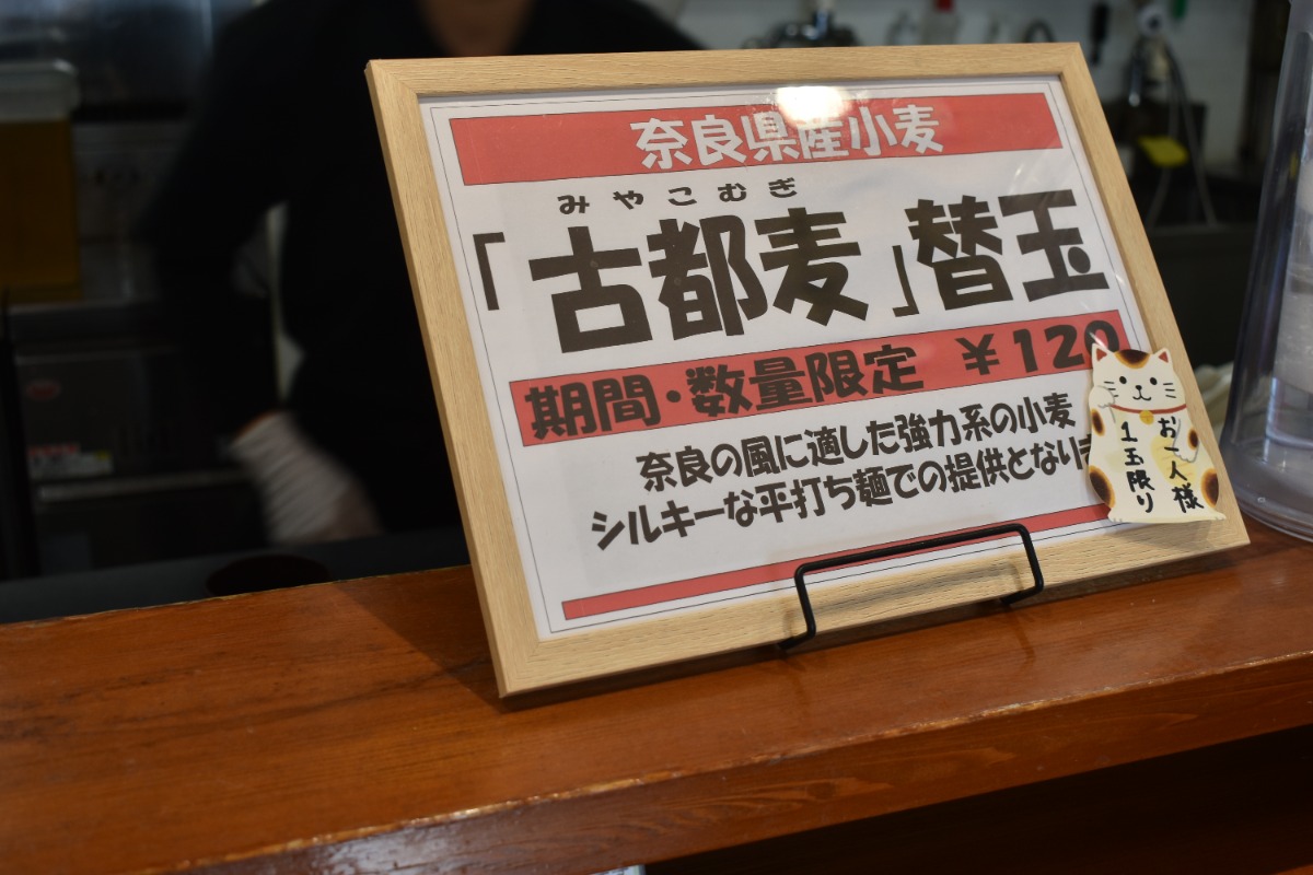 そんな『暁製麺』では数量限定で『古都麦』を使用した替え玉麺を販売している。