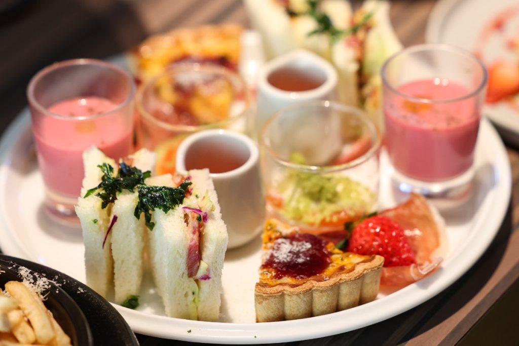 ティースタンドとクロッフルと世界一の長さを誇る10mのビバレッジバー(ドリンクバー)の利用にフライドポテトもついてきます✨