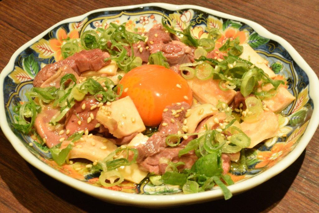 「生ホルモンユッケ」は鮮度抜群のホルモンを低温調理されているのでとろっとしているのが特徴。
