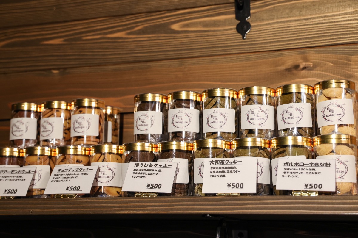 店内では奈良県産の材料を中心に作ったクッキーやジャムなども販売中。