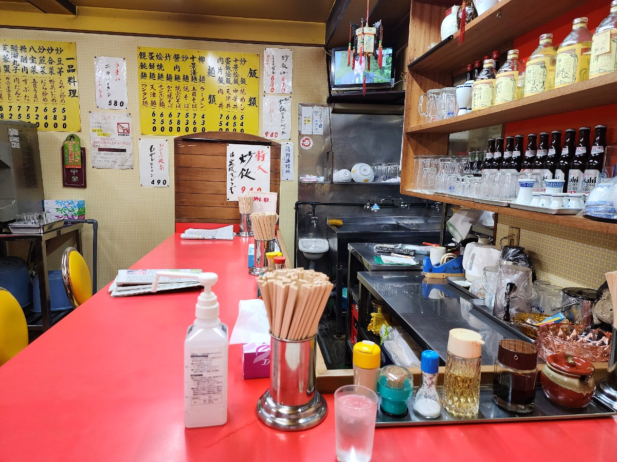 カウンターの奥にある厨房からは、唐揚げや肉だんごを揚げる音、餃子を焼く音、焼飯を振るうフライパンのカンカン鳴る音が響き渡り、期待値MAXで出来上がりを待ちました。
