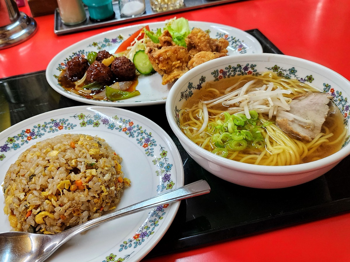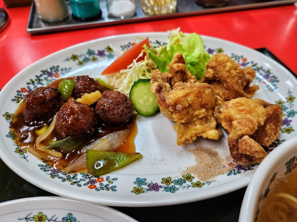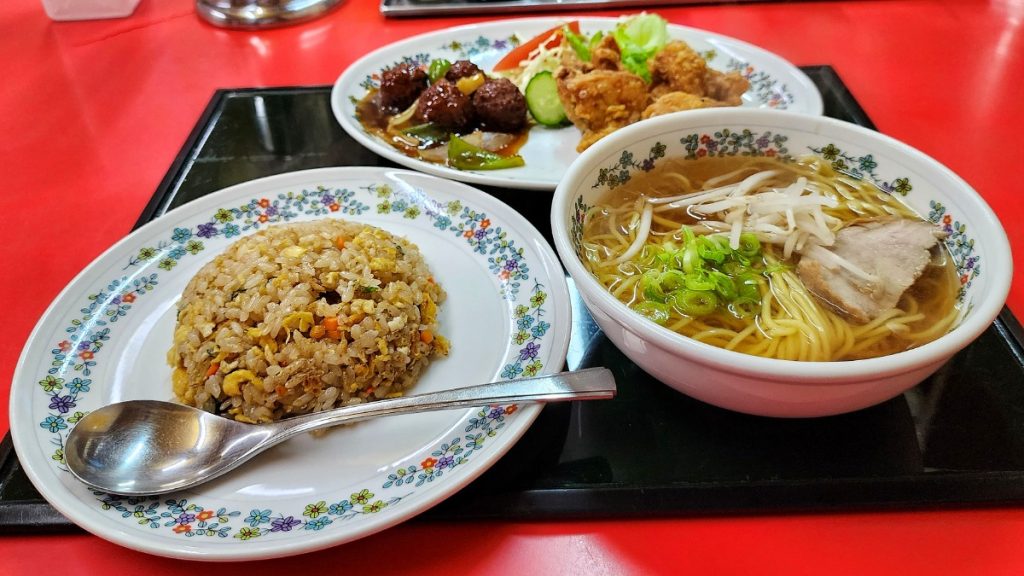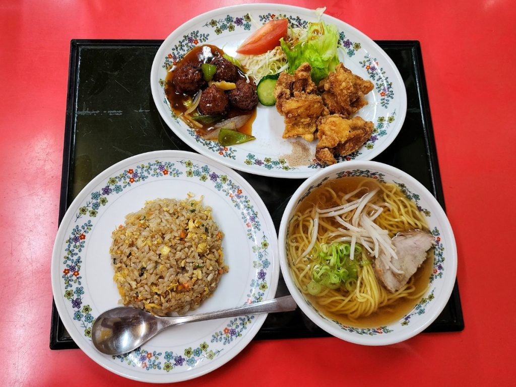 メニューが多く悩みましたが、焼飯は絶対に食べたかったので、焼飯小とラーメン小、肉だんごと唐揚げがセットで税込980円というミニセットだんごを注文。
