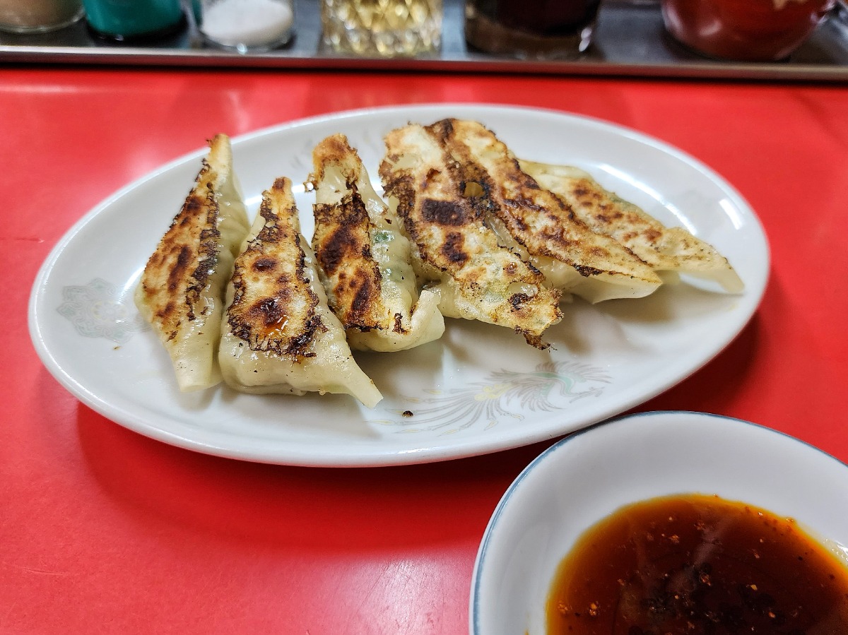 餃子(一人前税込300円)は皮がパリパリなわけでも餡に肉汁溢れるわけでもないですが、ニンニクが効いていてザ・町中華の餃子という味でビールのお供に最高でした!!