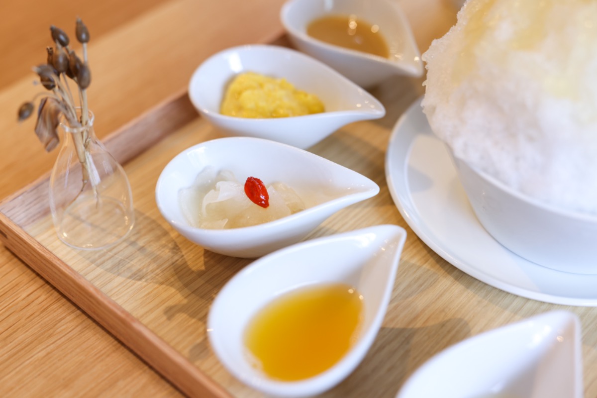 まずはそのまま冬瓜シロップで食べ、その後お好みのシロップをかけて薬膳氷を楽しんでね!