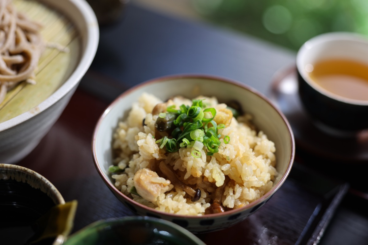 出汁が効いた具だくさんのかやくご飯は絶品!注文必須メニュー。