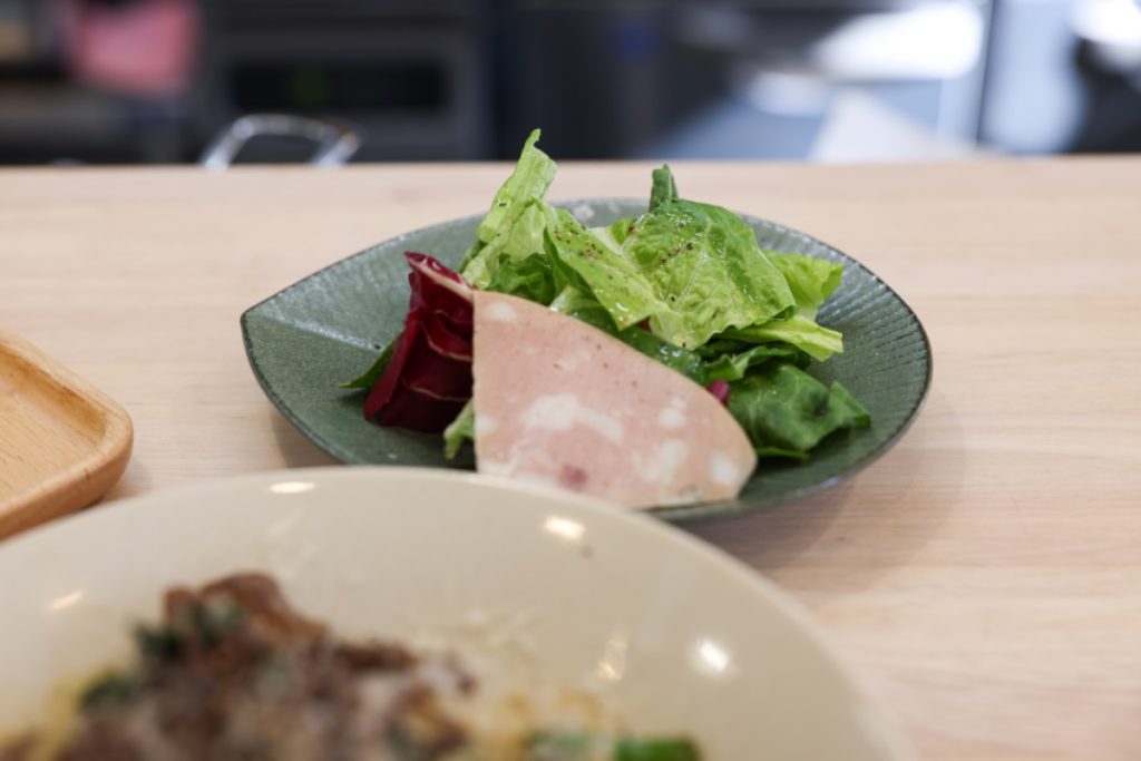 生パスタ+ミニサラダ+パンが付いて「1,300円」。