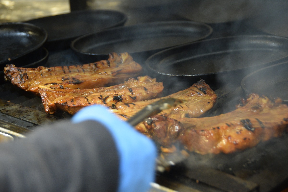 ピザは店内にあるガス窯で焼いたり、スペアリブなどもその場で調理。