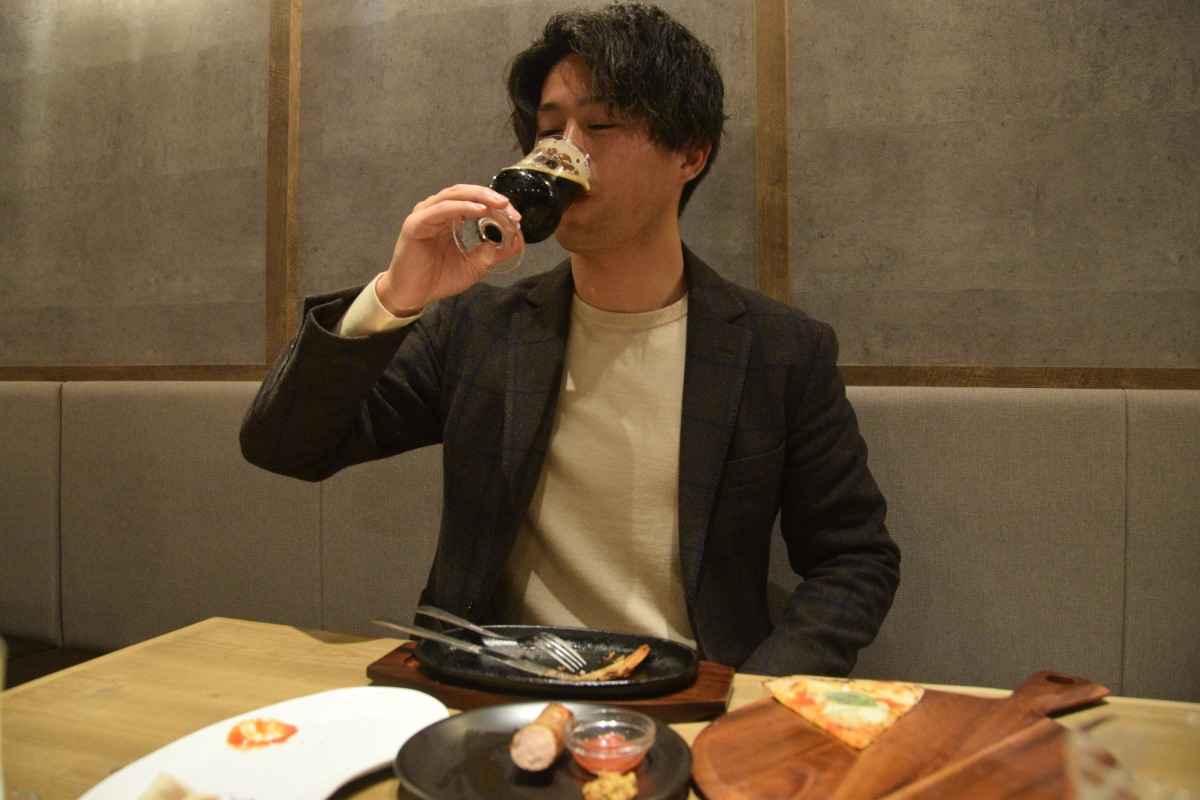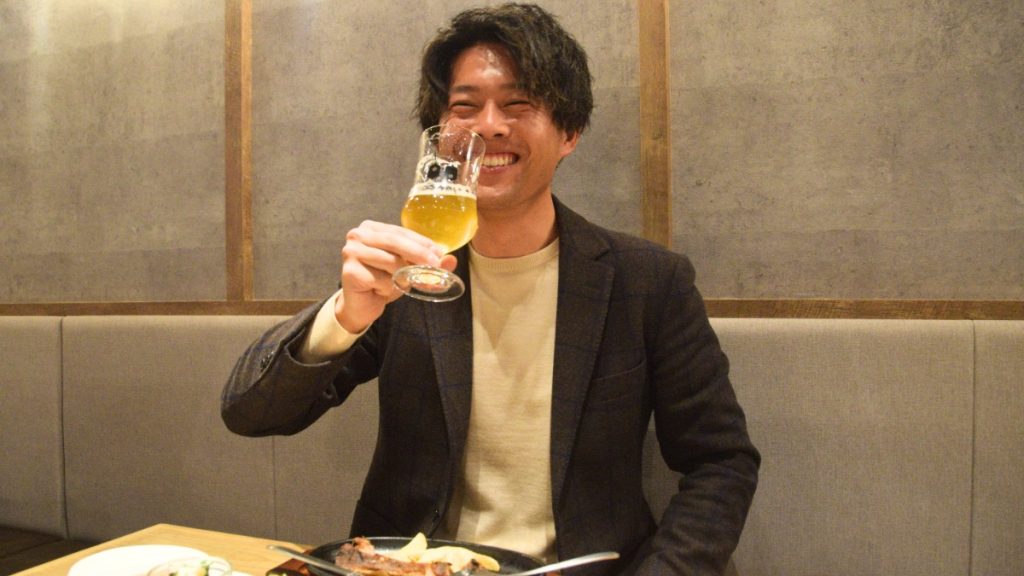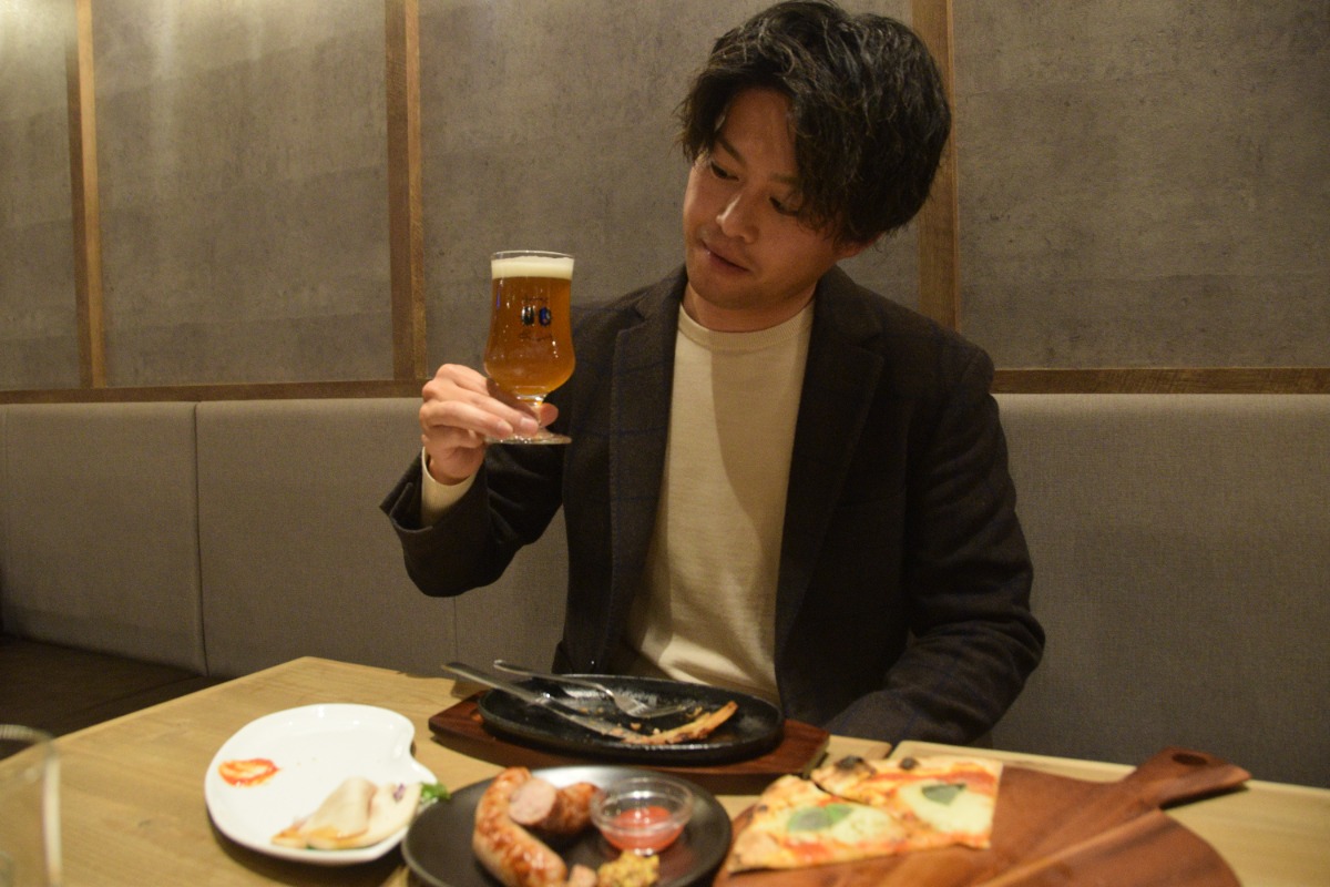 と『YAMATO Craft Beer Table 奈良三条通店』を堪能した「奈良のタウン情報ぱーぷる」編集部の山脇。