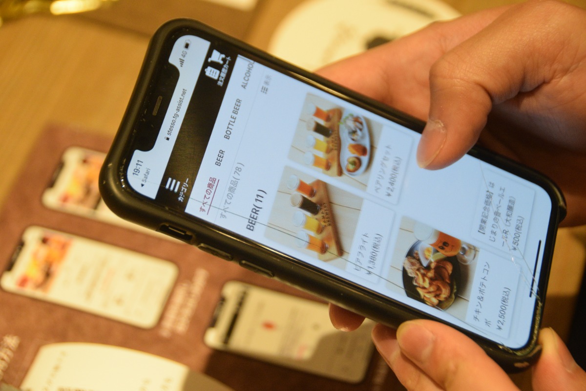 注文はテーブルごとに用意されたQRコードを読み取り、スマホで注文。