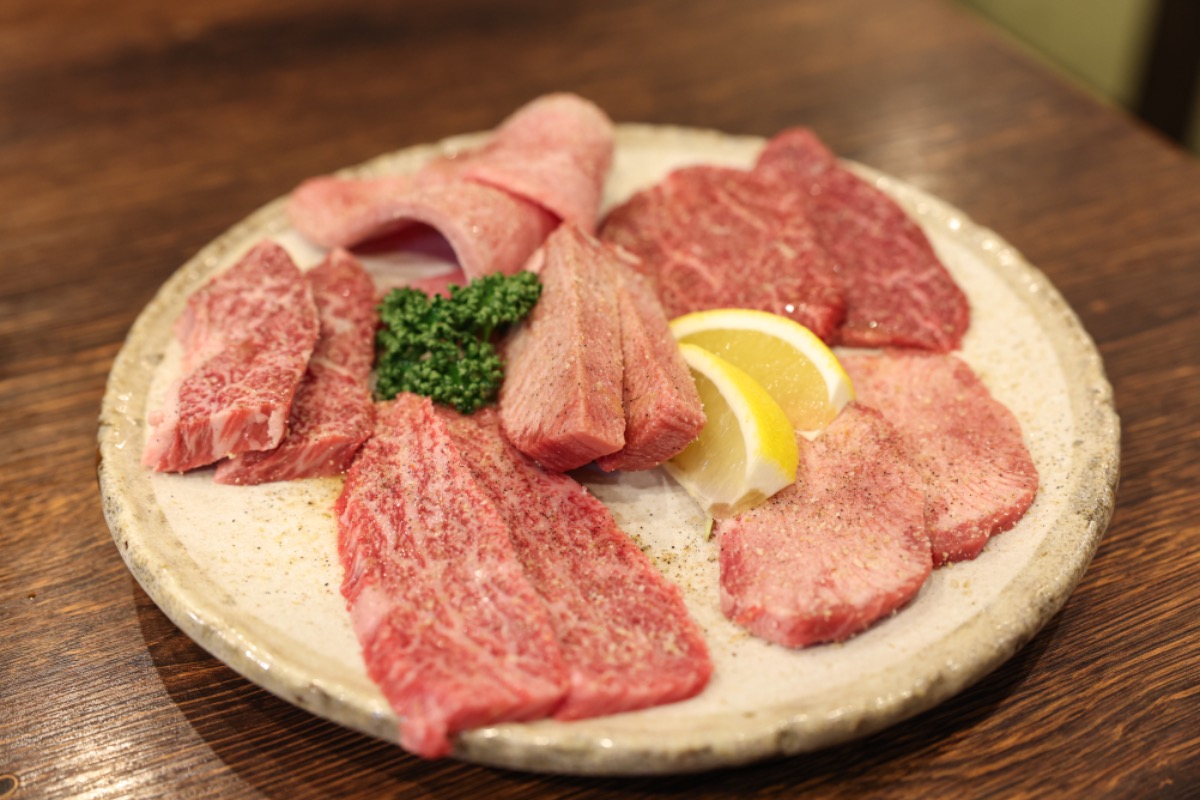 タンやハラミ、ミスジなど6種盛り合わせ。