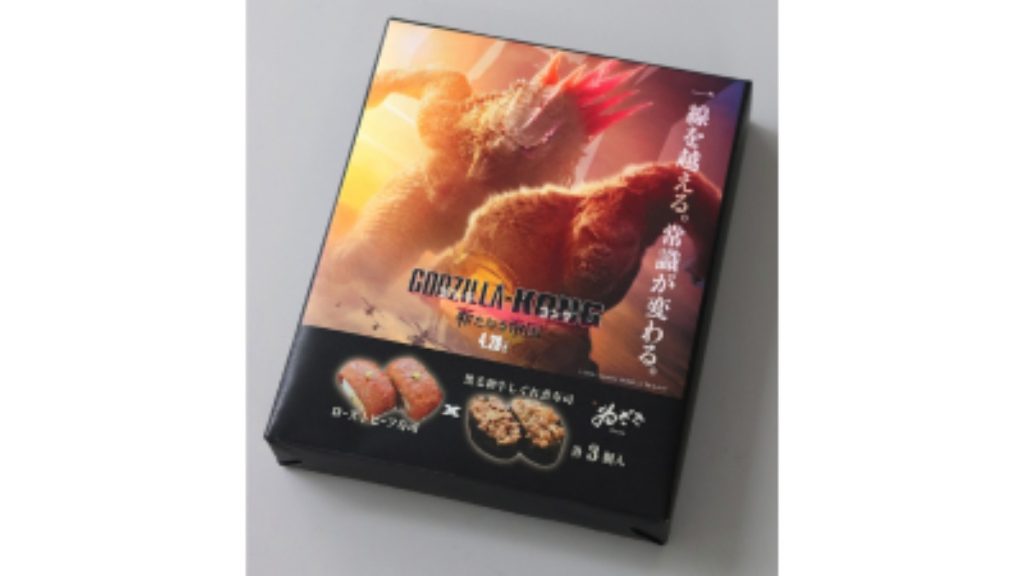 包装紙は映画公開に合わせ、ゴジラとコングのビジュアルをメインにした特別パッケージ。