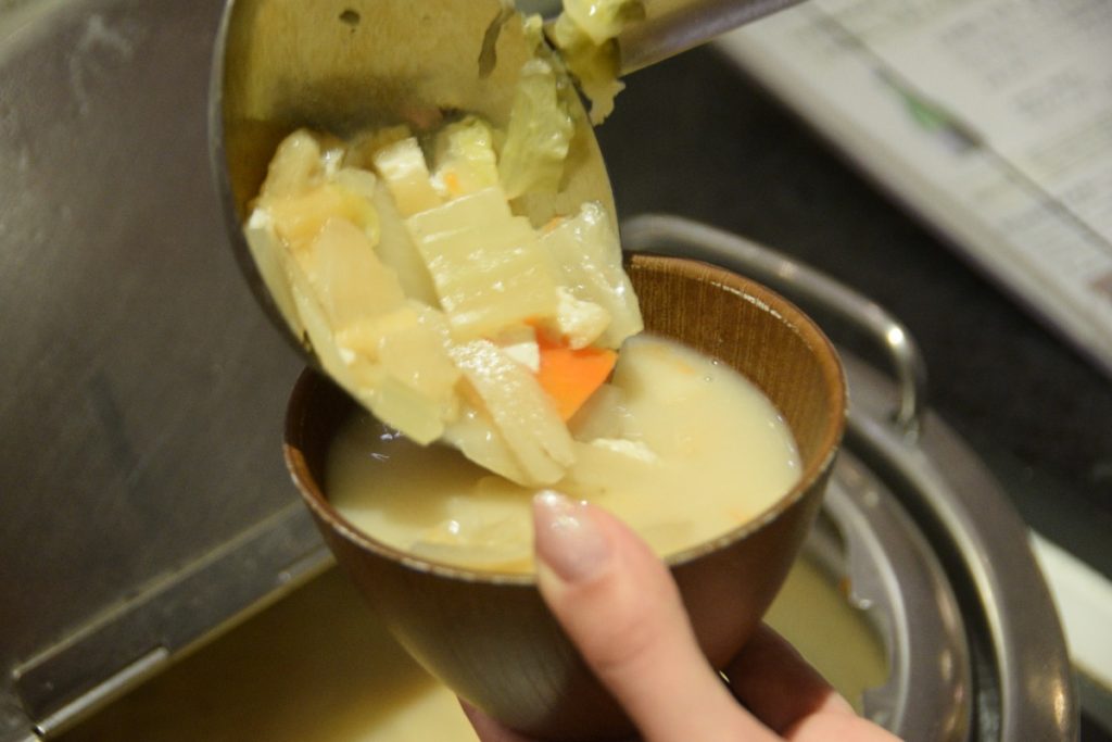 「特有のふんわりとした香りが食欲をそそります。今回の粕汁はすっきりとした味わいで具材もたくさん。贅沢な一品でした。温かい粕汁で胃を温めることで身体が目覚め、良い一日をスタートできそう。」