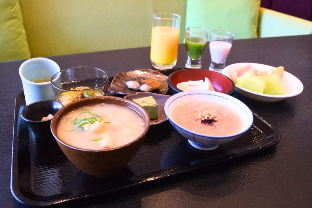 朝食は、その土地の気候風土が生んだ食材、習慣、伝統、歴史などによって生まれた食を楽しみ、食文化に触れるガストロノミーツーリズムを念頭に置いていることもあり、奈良伝統の料理が約6種類(【柿の葉寿司】【三輪素麺】【奈良漬】【茶粥】【茶飯】【豆乳鍋】)いただける。