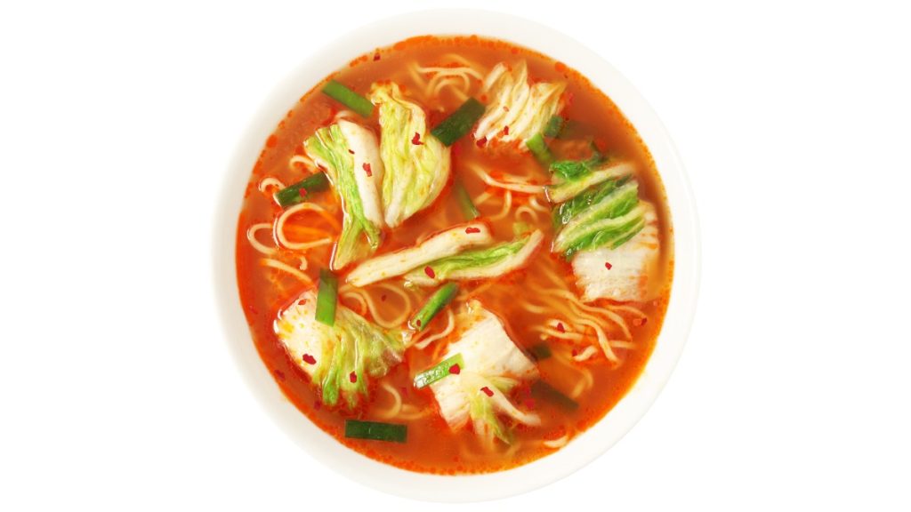 スープは白菜の旨みに炒めた野菜の風味が効いた、ピリ辛の醤油味で、シャキシャキとした食感のデカギリ白菜と、旨辛なスープが絶妙にマッチした、夏にぴったりの一杯である。