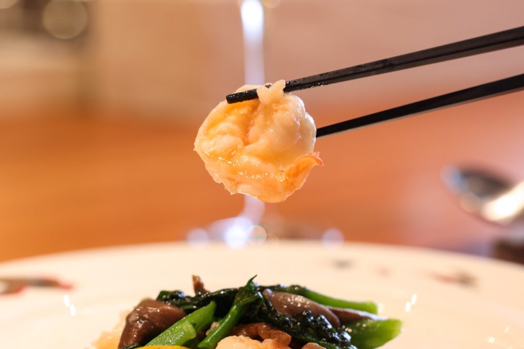 プリプリの海老と地元奈良の野菜をふんだんに使い、あっさりと塩炒めに仕上げた塩炒め。