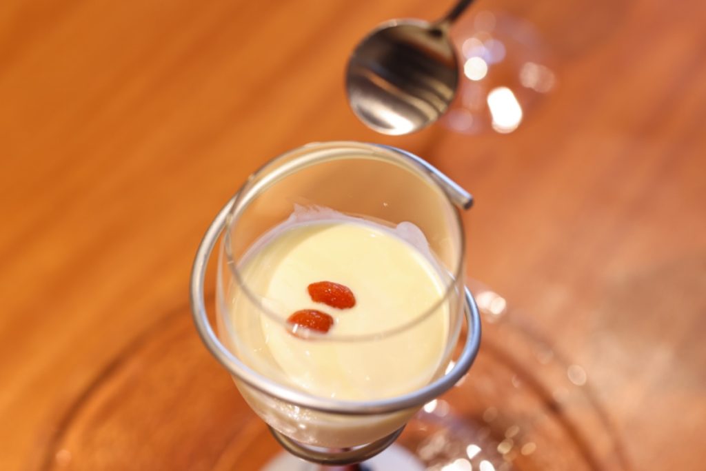品種の異なる杏仁を2種類使用して作る、とろりとした食感の杏仁豆腐。