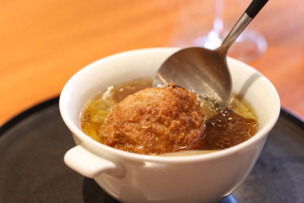 つなぎを一切使わず形成し、数種類の乾物を使用したスープと共に約8時間じっくりと蒸し上げます。