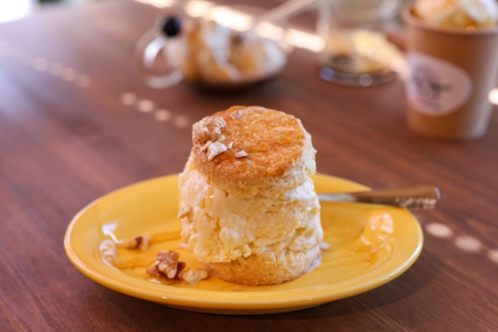 ハチミツの甘さとスコーンの塩っ気が混ざり、あまじょっぱい味で美味しかったですよ〜!