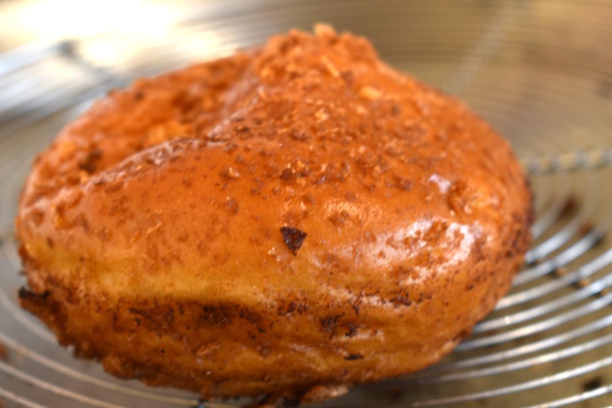 外側のアーモンドプードルの香り高いカリカリ食感のクッキー生地&内側の甘くてふわふわな生地が魅惑のカリフワ食感。仕上げにこだわりのきび糖をトッピング。