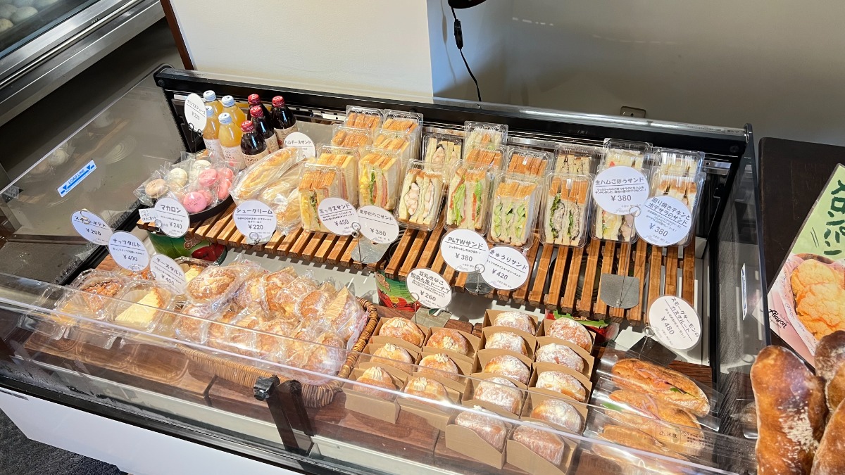 食パンサンドやカスクルート等含めて約10種類ほど並ぶほか、人気のシュークリームや流行の生ドーナツ、長野県産のこだわり果汁ジュースなど、人気のアイテムがズラリ。