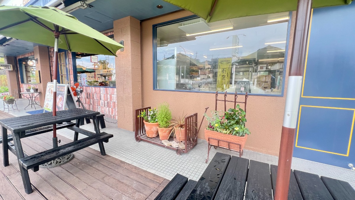 外のテラス席は雨天以外はいつでもご利用可能。 焼き立てパンや以外にも、コーヒー、自家製ジンジャーエール等テイクアウトドリンクも楽しめます。新しくできた大窓からはキッチンの作業風景が見えるように。