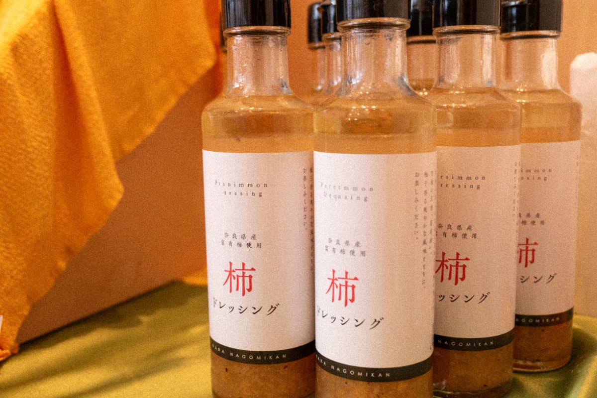 薬膳キーマカレープレートのこだわりサラダにかけて食べられる柿ドレッシングも!