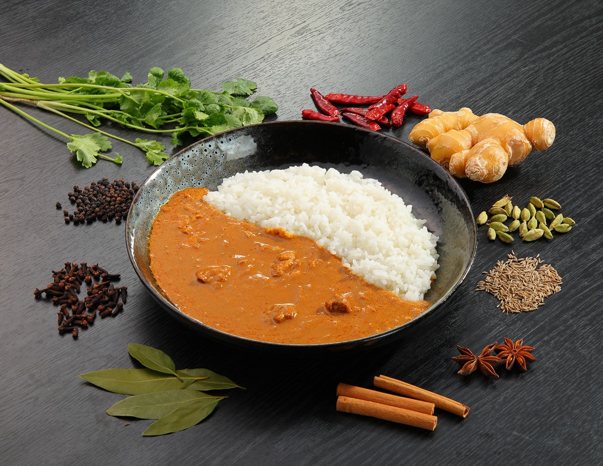 漢方のカルダモンやコリアンダーなど21種類のスパイスを配合し、バターとチキンのコクを感じる商品。