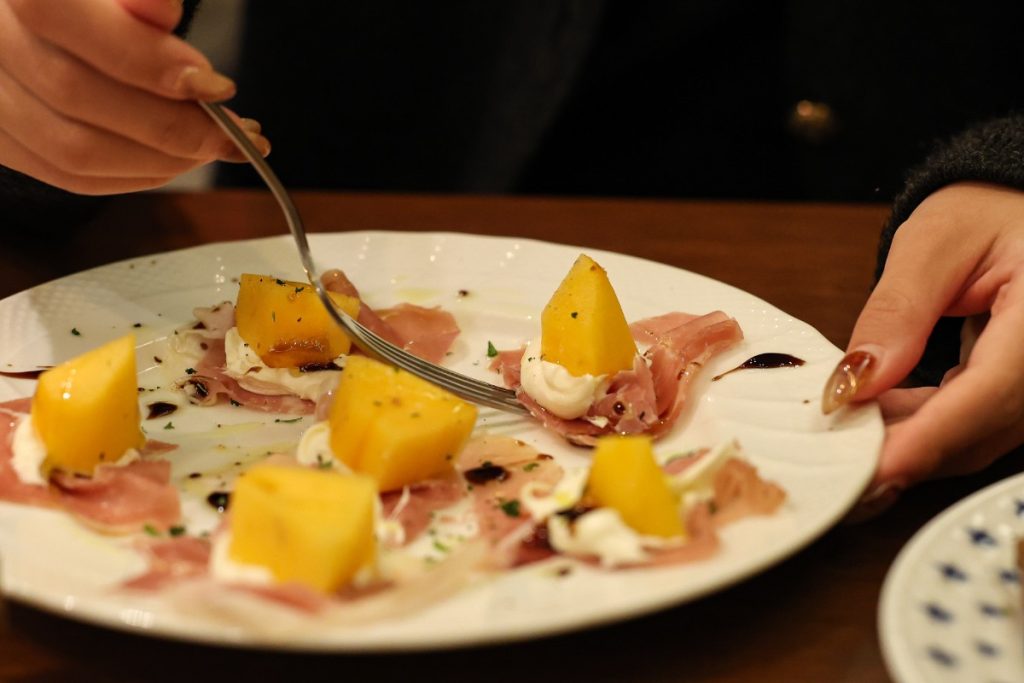生ハムとフルーツの前菜も人気!深夜まで営業だから女子会にも◎