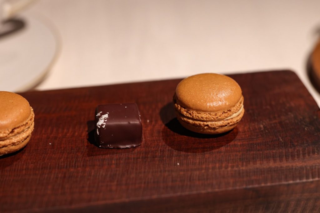 燻製をかけたチョコレートとキャラメルのマカロンです。