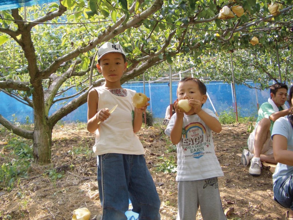甲子園球場の3倍の面積をもつ広大な敷地では、有機肥料をふんだんに使った野菜や果物を栽培。みかん、なし、ぶどう、さつまいもなどから好きな味覚狩りを選んでみて!