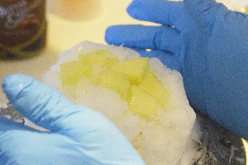そして、かき氷の下には、上品な甘さのはちみつが使用されている。