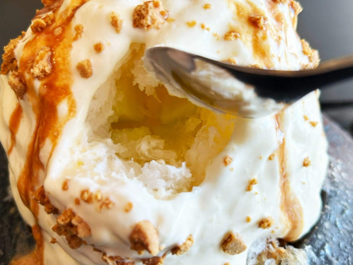 『セリーナのブリュレ氷』の最大の特徴は、あの濃厚でとろけるようなクレームブリュレの味わいを、冷たいかき氷として堪能できる点。