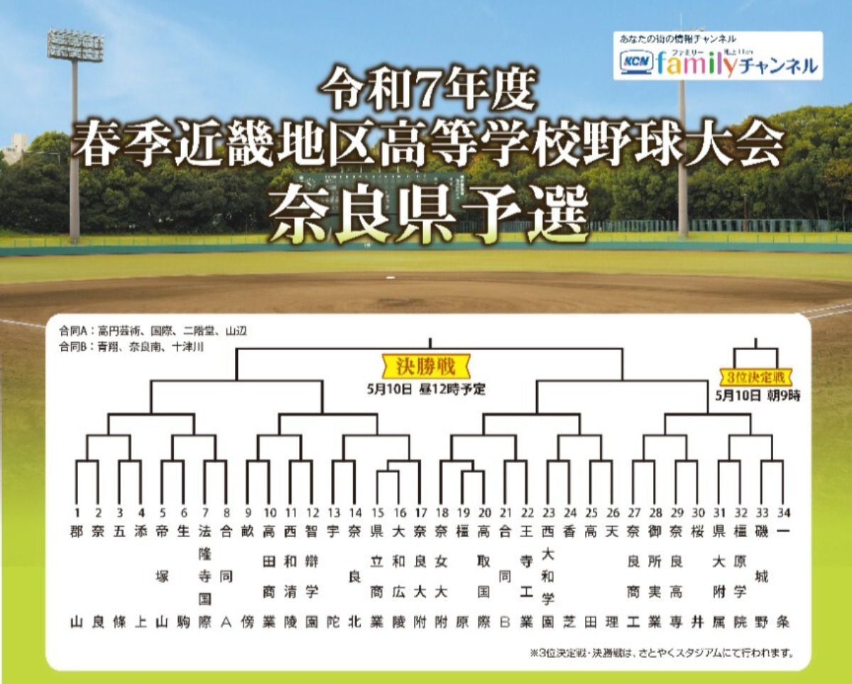 近畿大会が奈良県で開催されるため、奈良県代表として3校が近畿大会への出場権を得る。