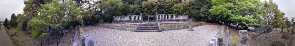 聖武天皇陵の360度写真。天皇陵の拝所は大体このような造りで、参拝可能。